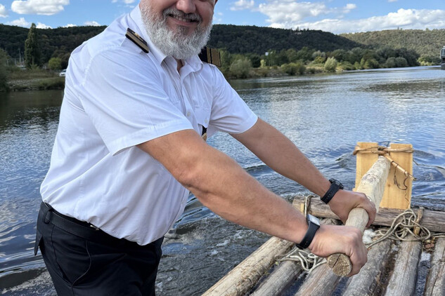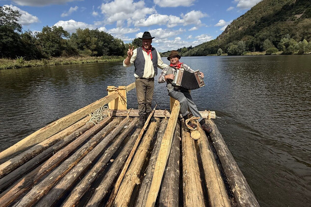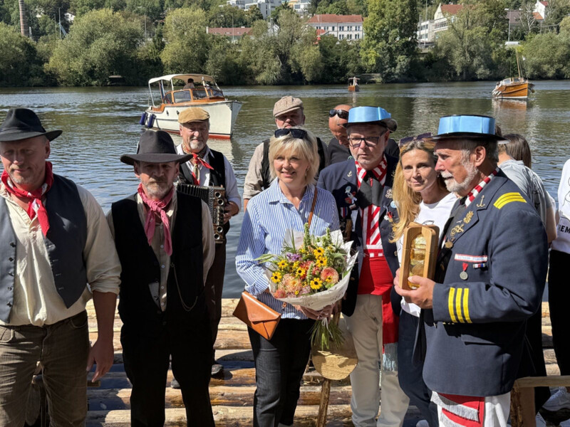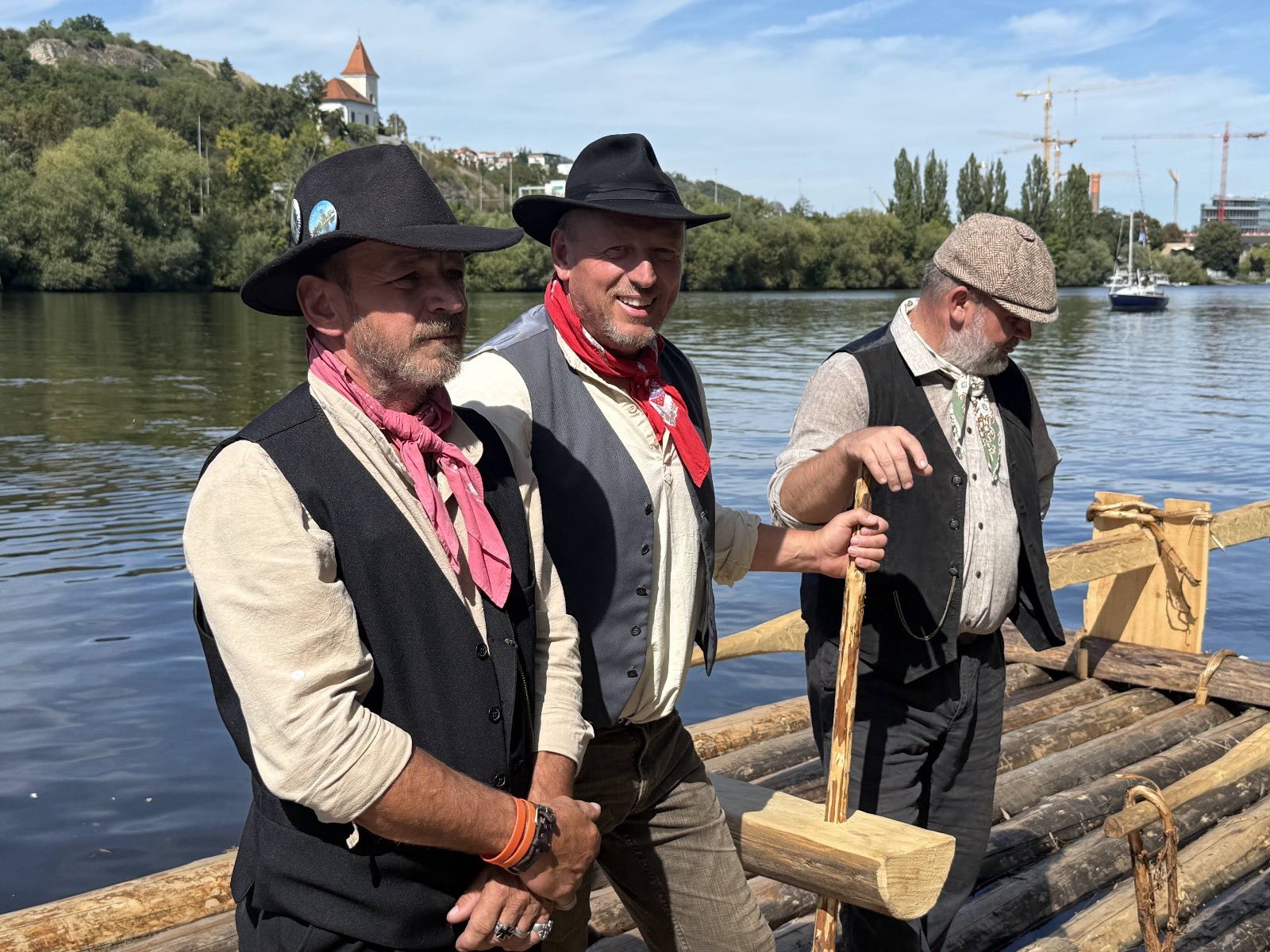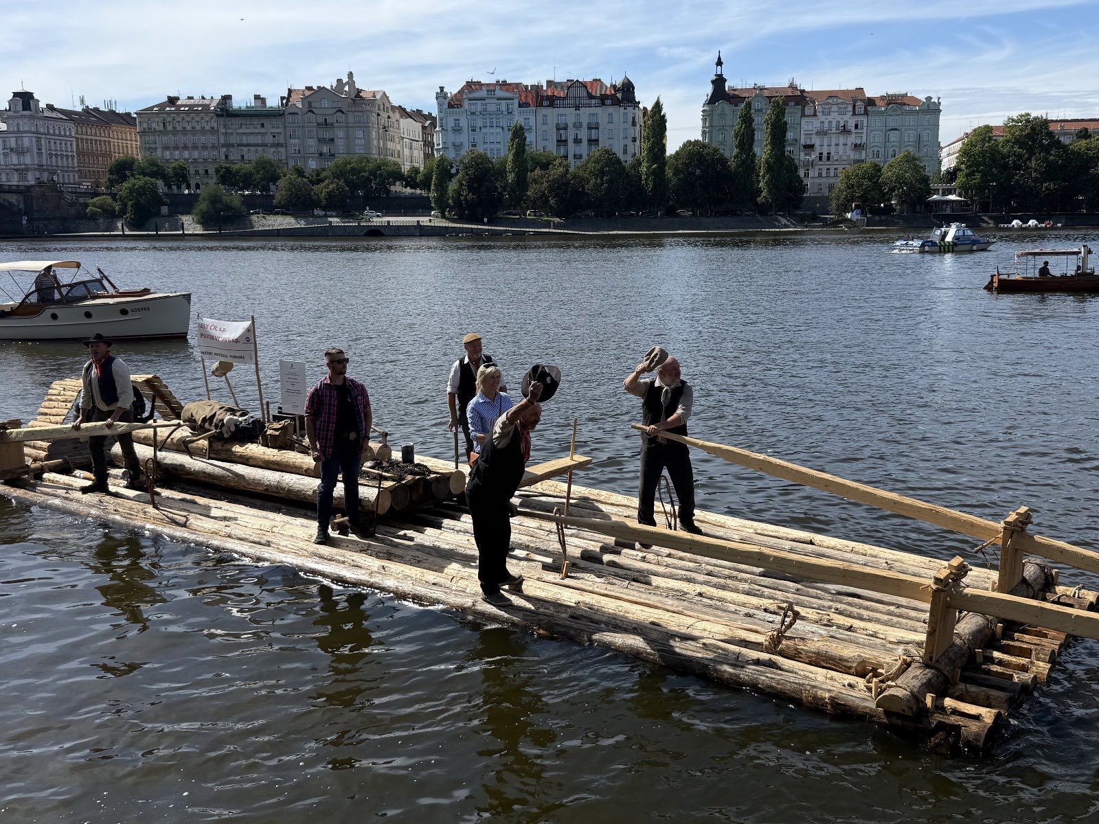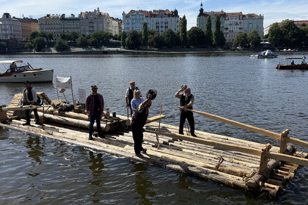 Trojice plavců z Purkarce, ve složení vrátný Jan Pöschl, Josef Nachlinger a Jan Pöschl na historické vorové tabuli ve čtvrtek 4. září dopravili z pražského veslařského klubu Bohemians TJ na Rašínovo nábřeží k bočnokolesovému parníku Vltava manželku prezidenta ČR Evu Pavlovou.
