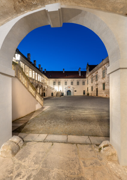 Ve slavnostním banketním sále vás čeká komorní koncert a celý večer vyvrcholí ve 22:00 působivou světelnou show, která rozzáří arkádové nádvoří.